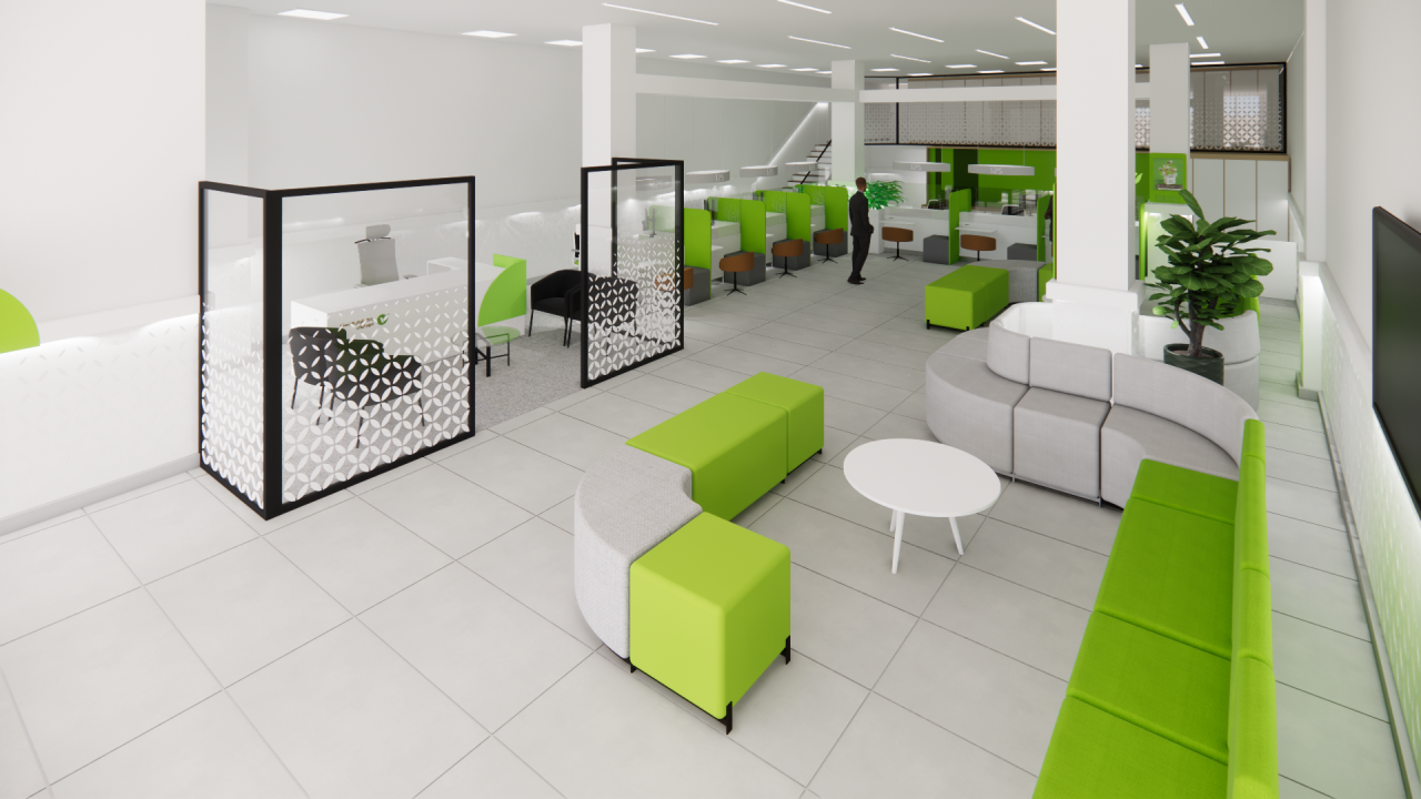 طراحی غرفه نمایشگاهی به سبک مدرن دارای Cip Vip انباری ورودی کافه بار