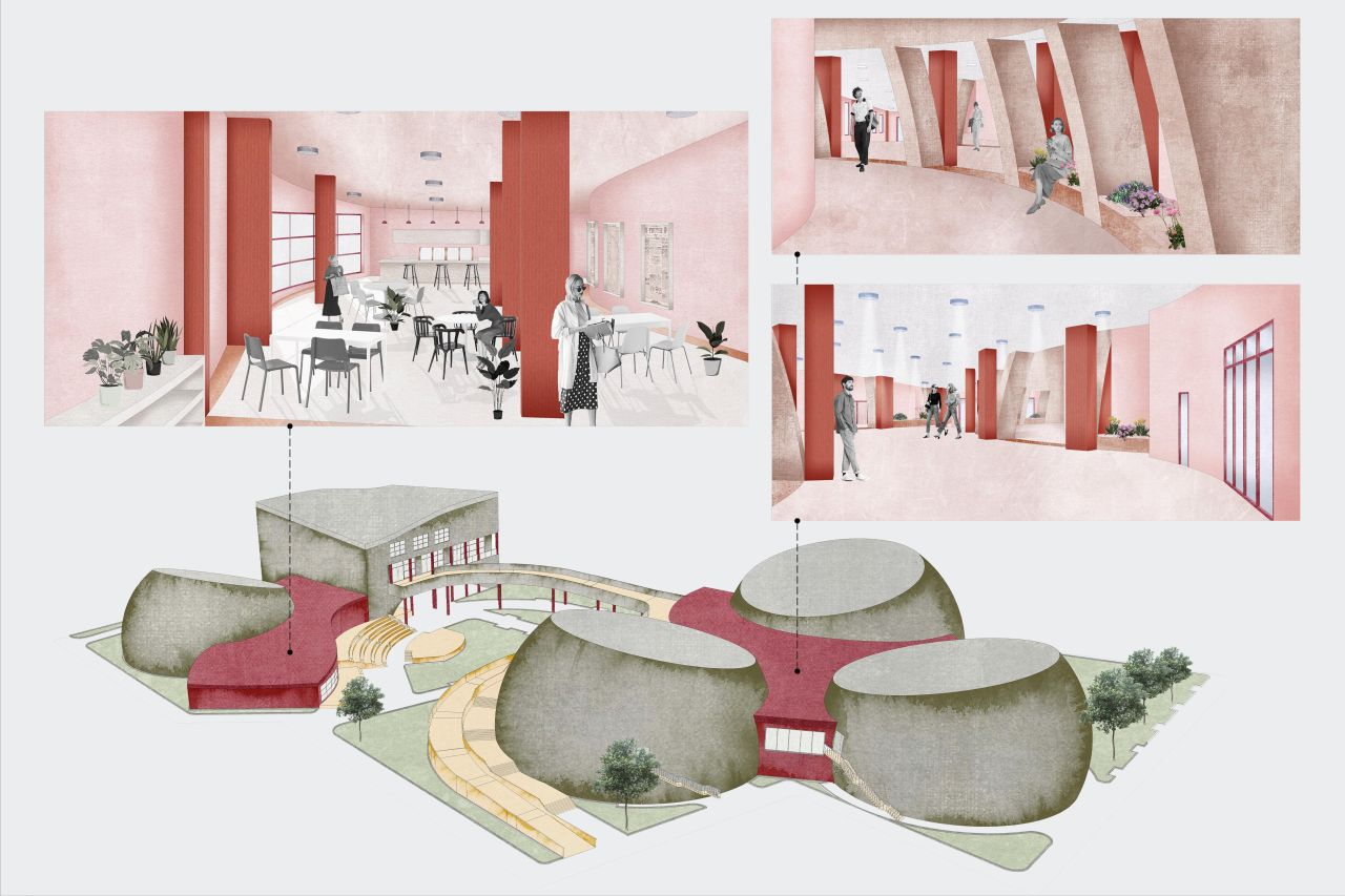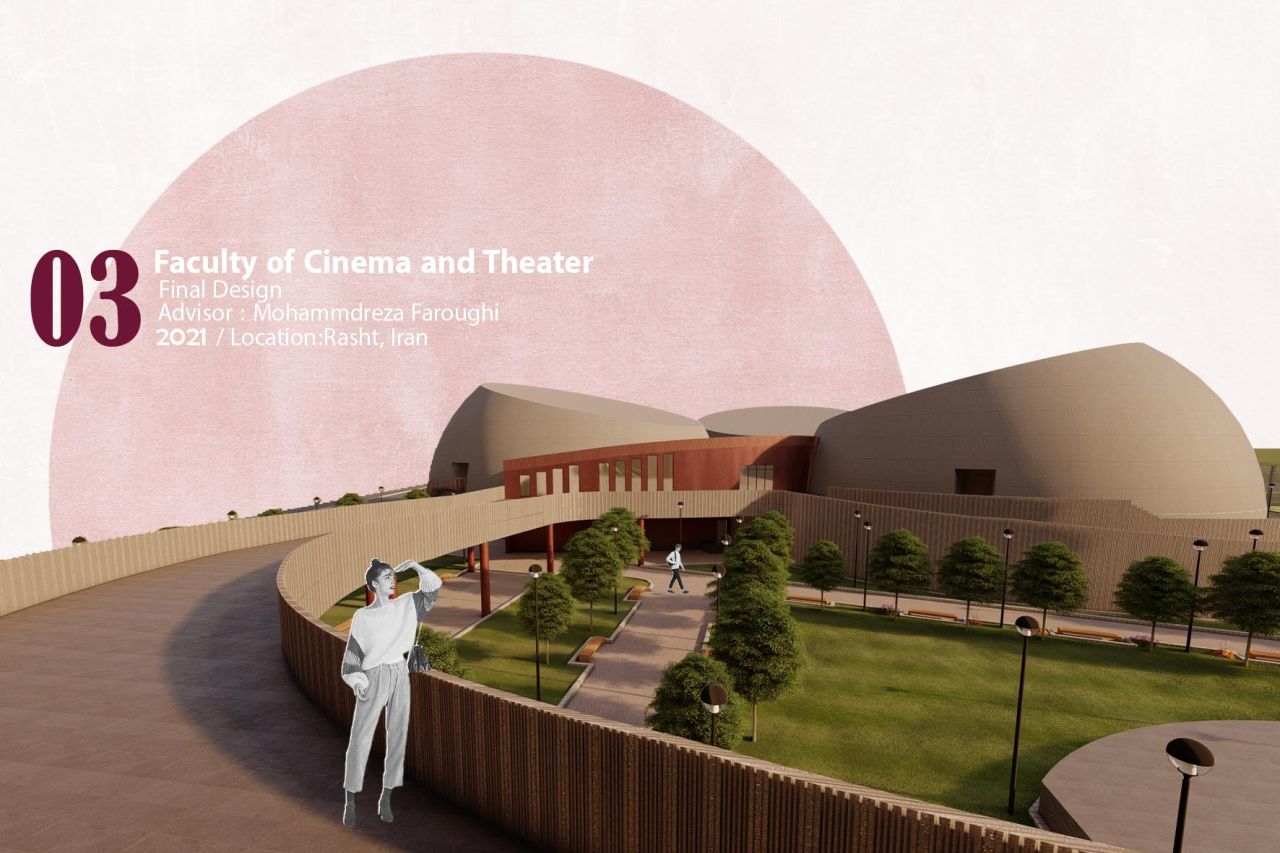 پروژه پایاننامه کارشناسی تحت نام مدرسه تئاتر، دارا بودن فضاهایی مانند آموزشی، اداری، فضای تمرین، کافه و تئاتر