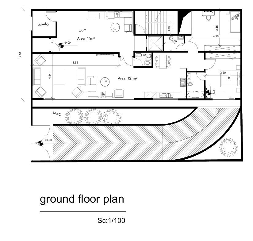 طراحی سه بعدی با استفاده از رویت و رندر گیری با استفاده از اینسکیپ. استفاده از متریالهای طبیعی و حس سر زندگی در فضای اطراف.