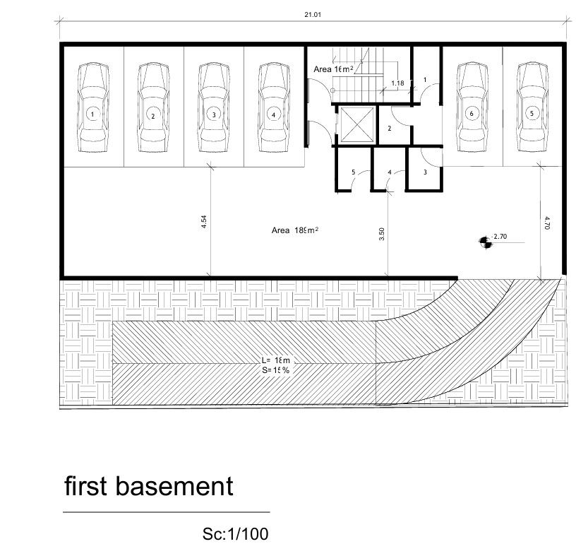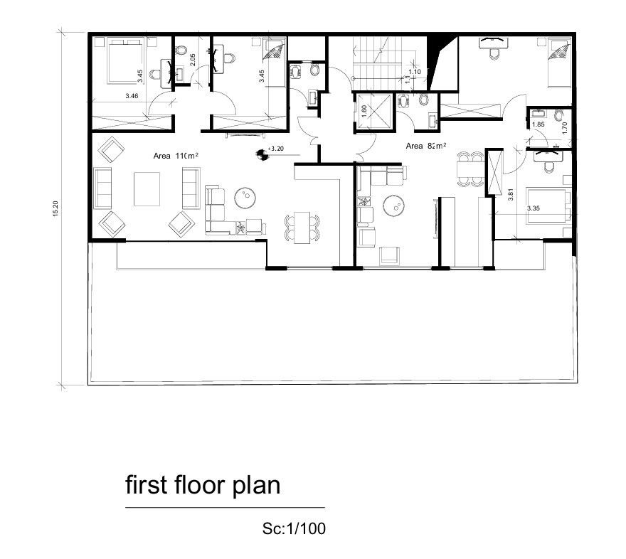 طراحی پلان مجتمع مسکونی 4 طبقه دو واحدی با نور گیری جنوب و غرب.