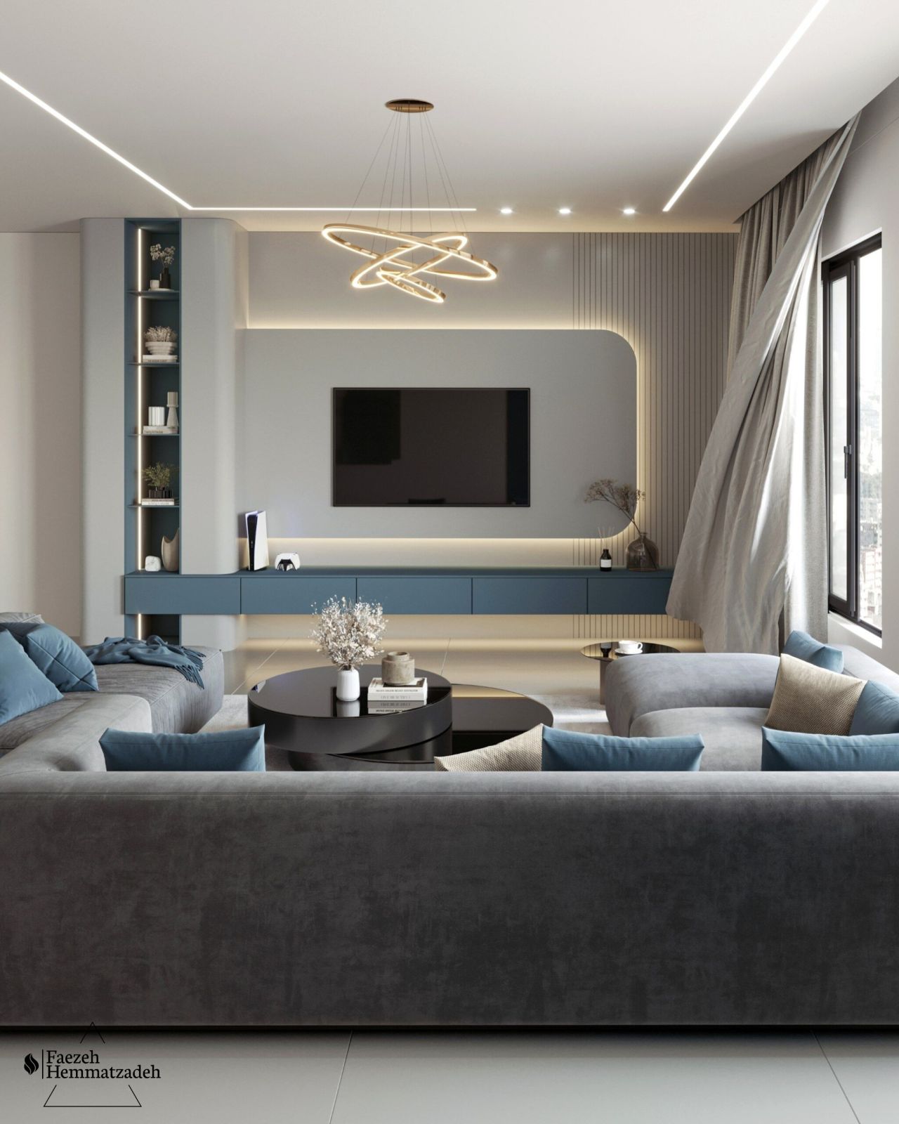 این پروژه طراحی داخلی نشیمن و تی وی وال به سبک مدرن و رنگ کار طبق سلیقه کارفرما بوده است.