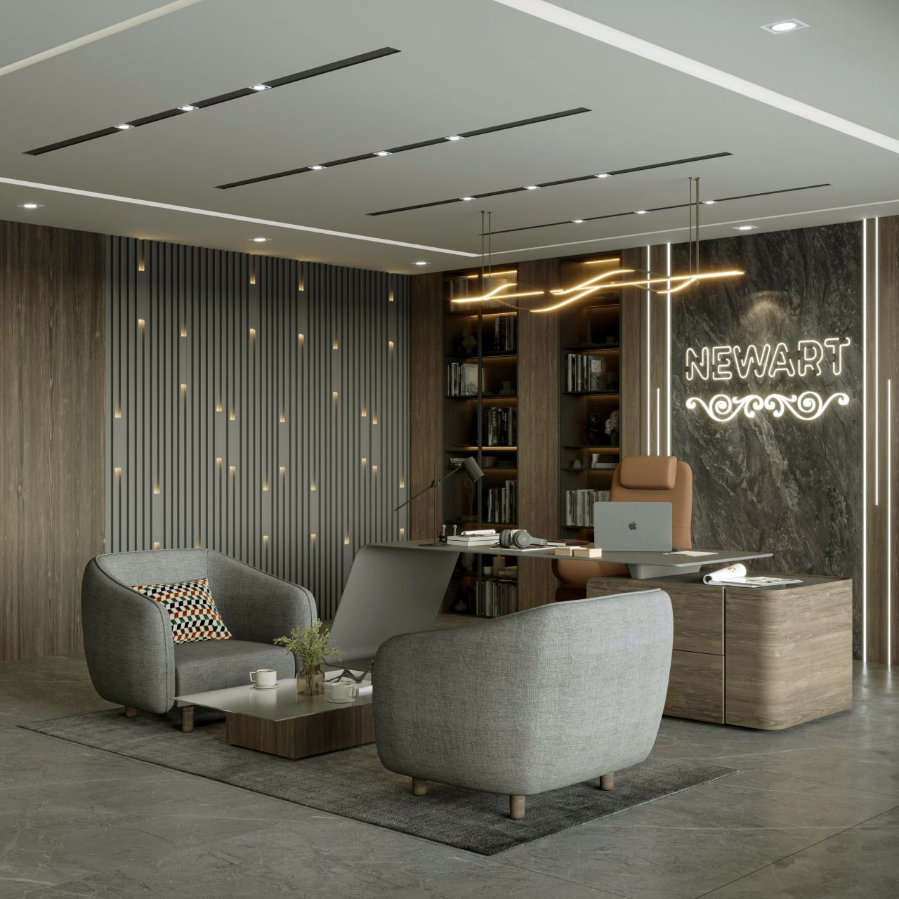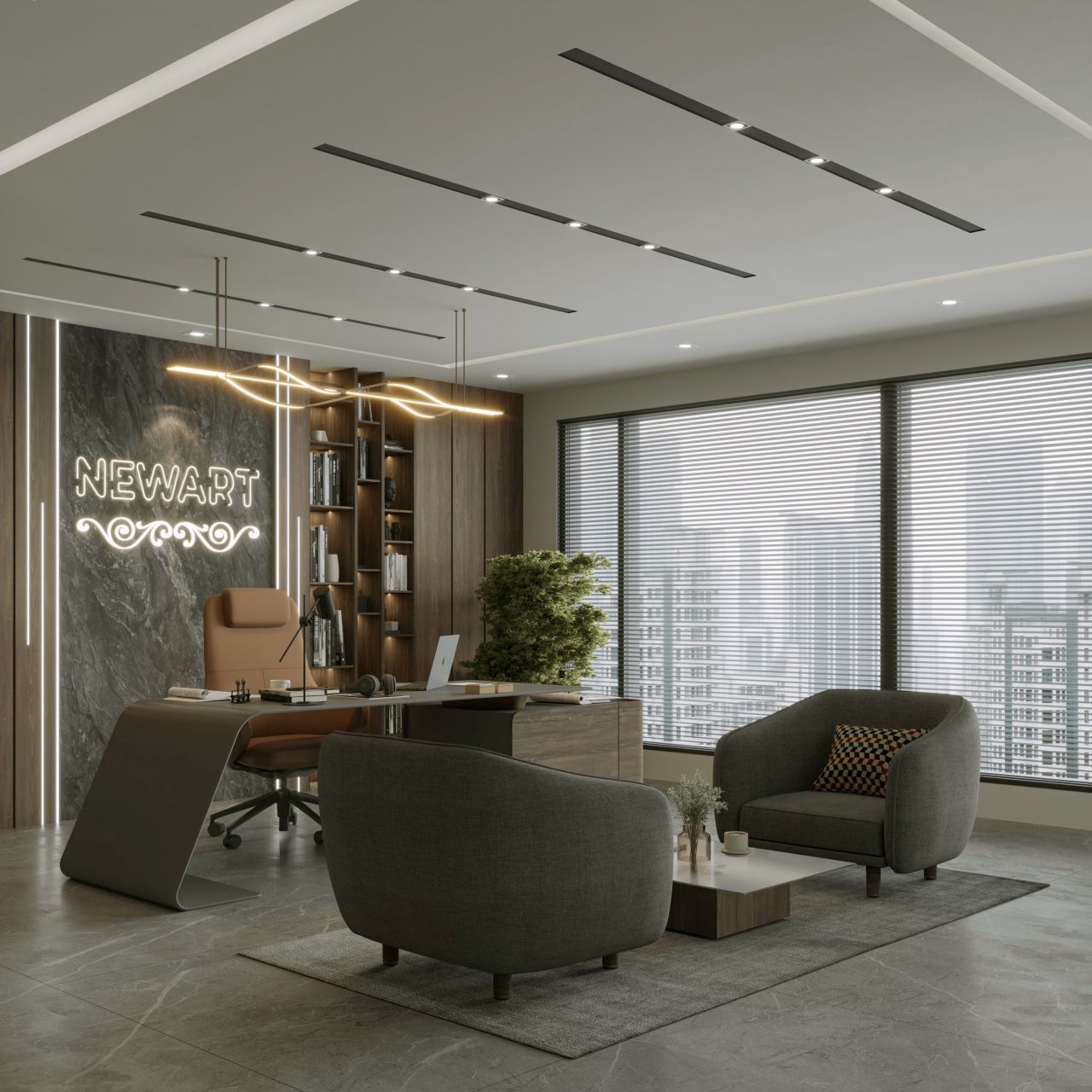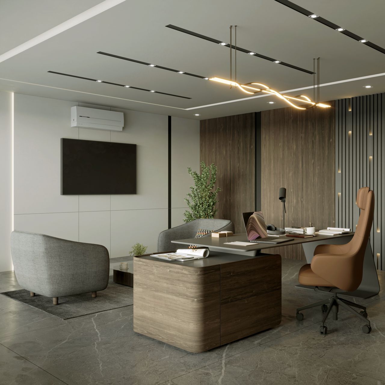 این پروژه طراحی داخلی اداری (دفتر مدیریت) در تهران به سبک مدرن است.