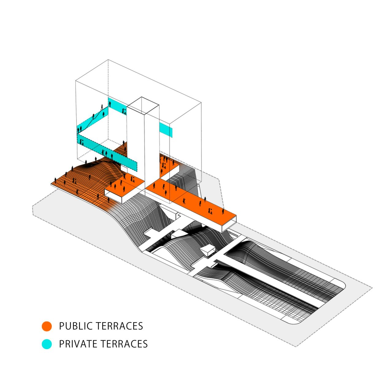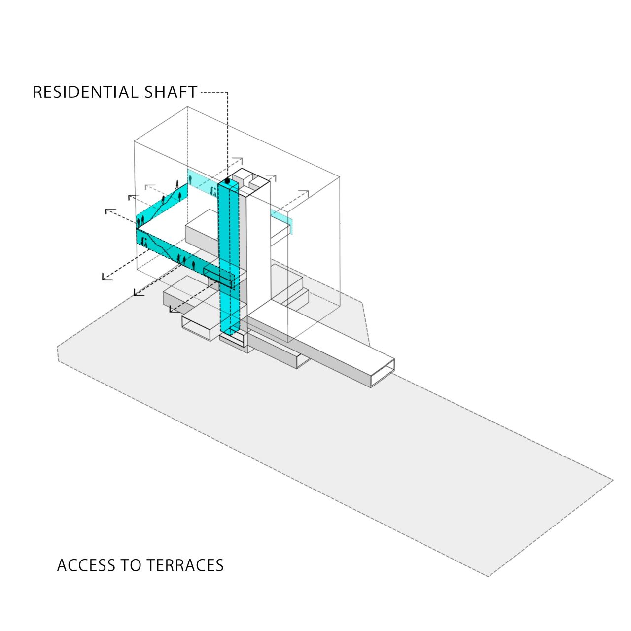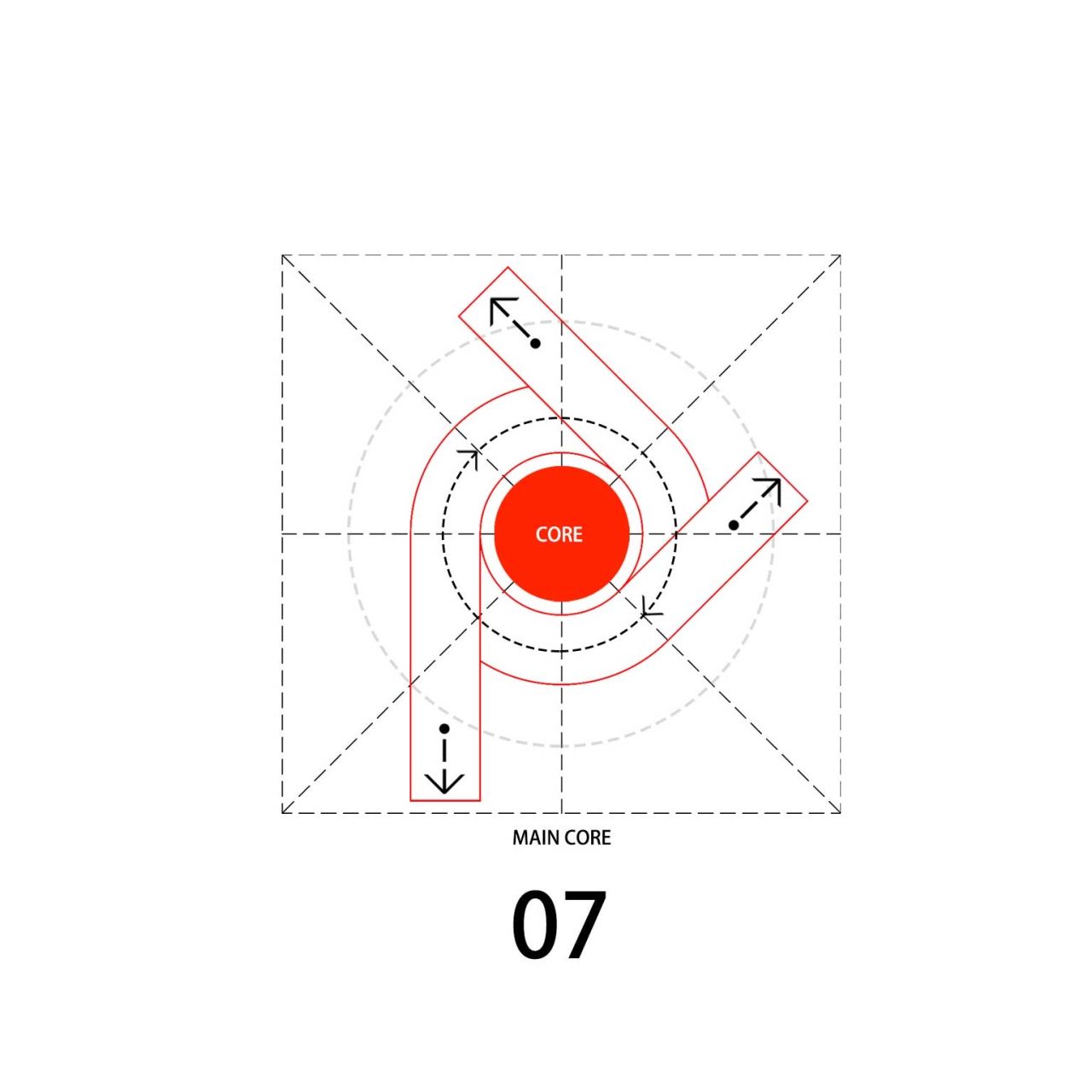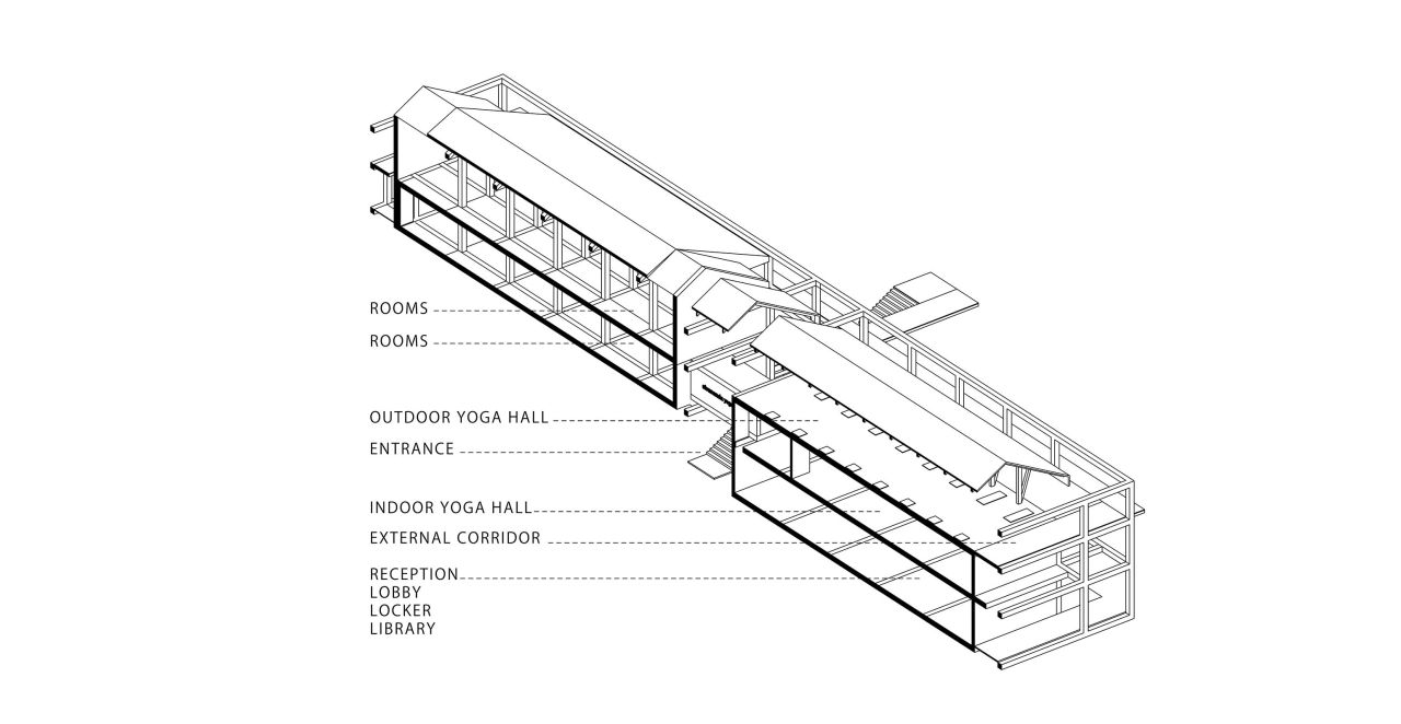 این پروژه از یک هسته مرکزی که در درون یک گرید سازه ایی قرار گرفته تشکیل شده است که هسته مرکزی در نقش فضاهای عملکردی میانی و گرید بیرونی به عنوان عنصر سازه ایی نقش ایفا می کند و در فضای میانی آن دو مسیر های حرکتی که تراس های حاشیه ایی را به هم متصل می کنند جانمایی شده است، این ساختار یک سازماندهی برونگرا را برای پروژ ایجاد می کند که هر اتاق را به صورت جداگانه به یک تراس بیرونی متصل می کند در نتیجه دسترسی به دید و منظر و استفاده از نور و تهویه مناسب را آسان میکند .