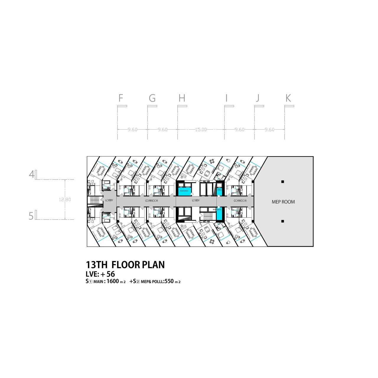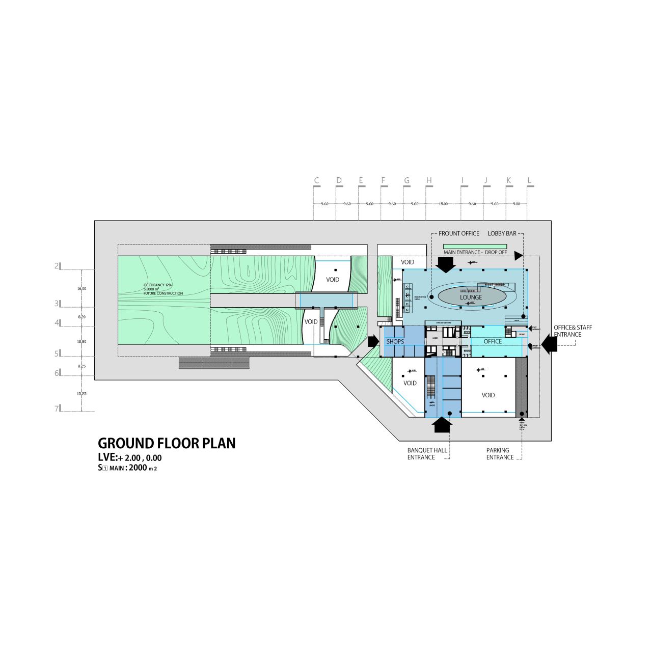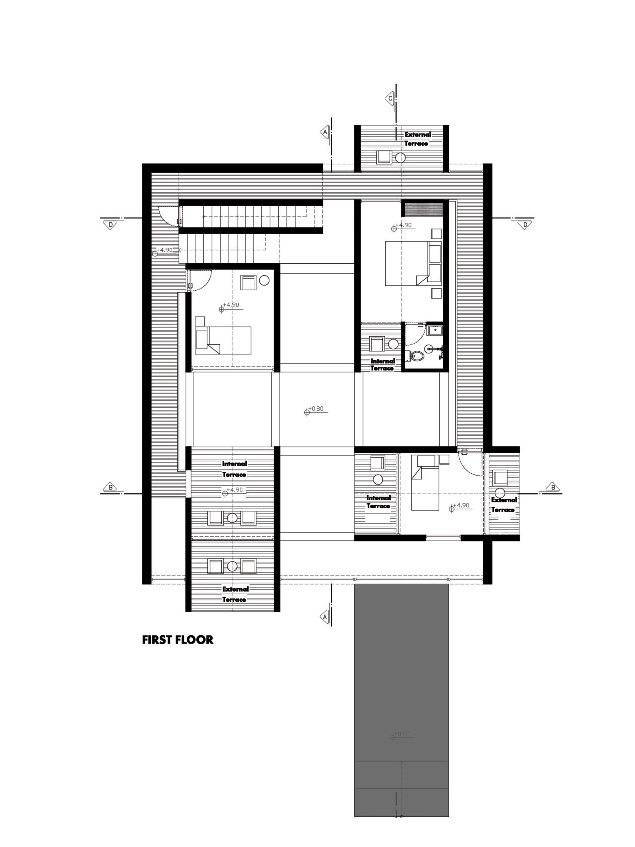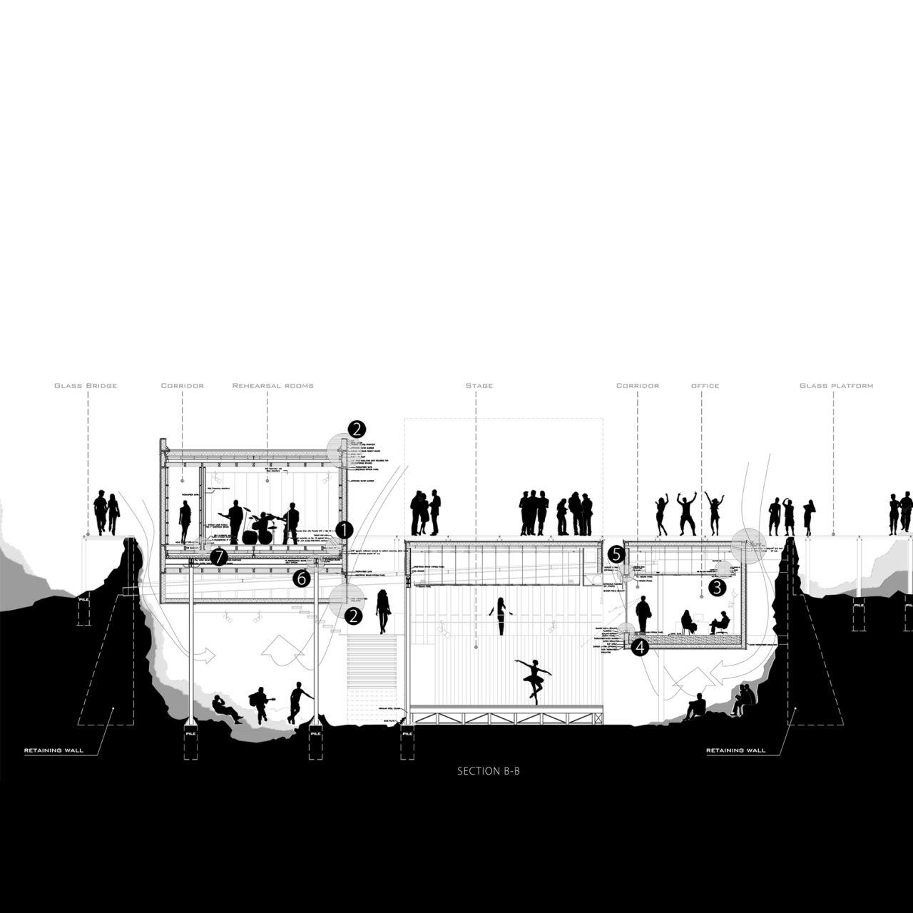 این پروژه از یک هسته مرکزی که در درون یک گرید سازه ایی قرار گرفته تشکیل شده است که هسته مرکزی در نقش فضاهای عملکردی میانی و گرید بیرونی به عنوان عنصر سازه ایی نقش ایفا می کند و در فضای میانی آن دو مسیر های حرکتی که تراس های حاشیه ایی را به هم متصل می کنند جانمایی شده است، این ساختار یک سازماندهی برونگرا را برای پروژ ایجاد می کند که هر اتاق را به صورت جداگانه به یک تراس بیرونی متصل می کند در نتیجه دسترسی به دید و منظر و استفاده از نور و تهویه مناسب را آسان میکند .