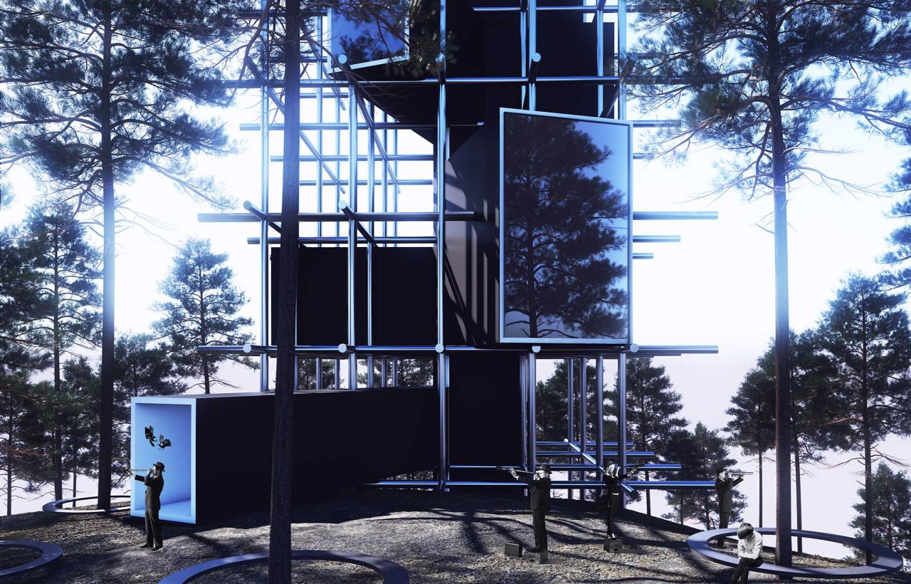 رابطه عرضی میان اجزای درونی جعبه، فضاها را از یک خوانش سلسله مراتبی خارج کرده و تمام اجزای تشکیل دهنده، شامل برنامه پروژه، دسترسی ها و اشیاء در یک اسکرین پیوسته در مقابل چشمان سوژه قرار دارد. تعلیق اجزا و برنامه فیزیکی و فاصله گرفتن از جداره ها وانتقال دسترسی ها به فضای میانی اشیاء و پوسته ساختمان،ساختار درونی پروژه را به ابژه های مجزا، منفک که سعی میکنند ویژگی ها و پارامتر های یک شئ کامل را در درون خود تامین کنند تبدیل می کند . (هر ابژه ایی , خانه ایست جدید در درون خانه اصلی!)
