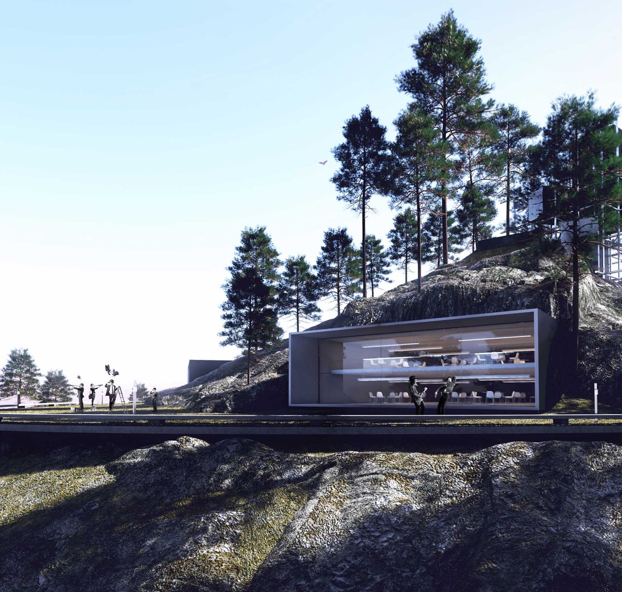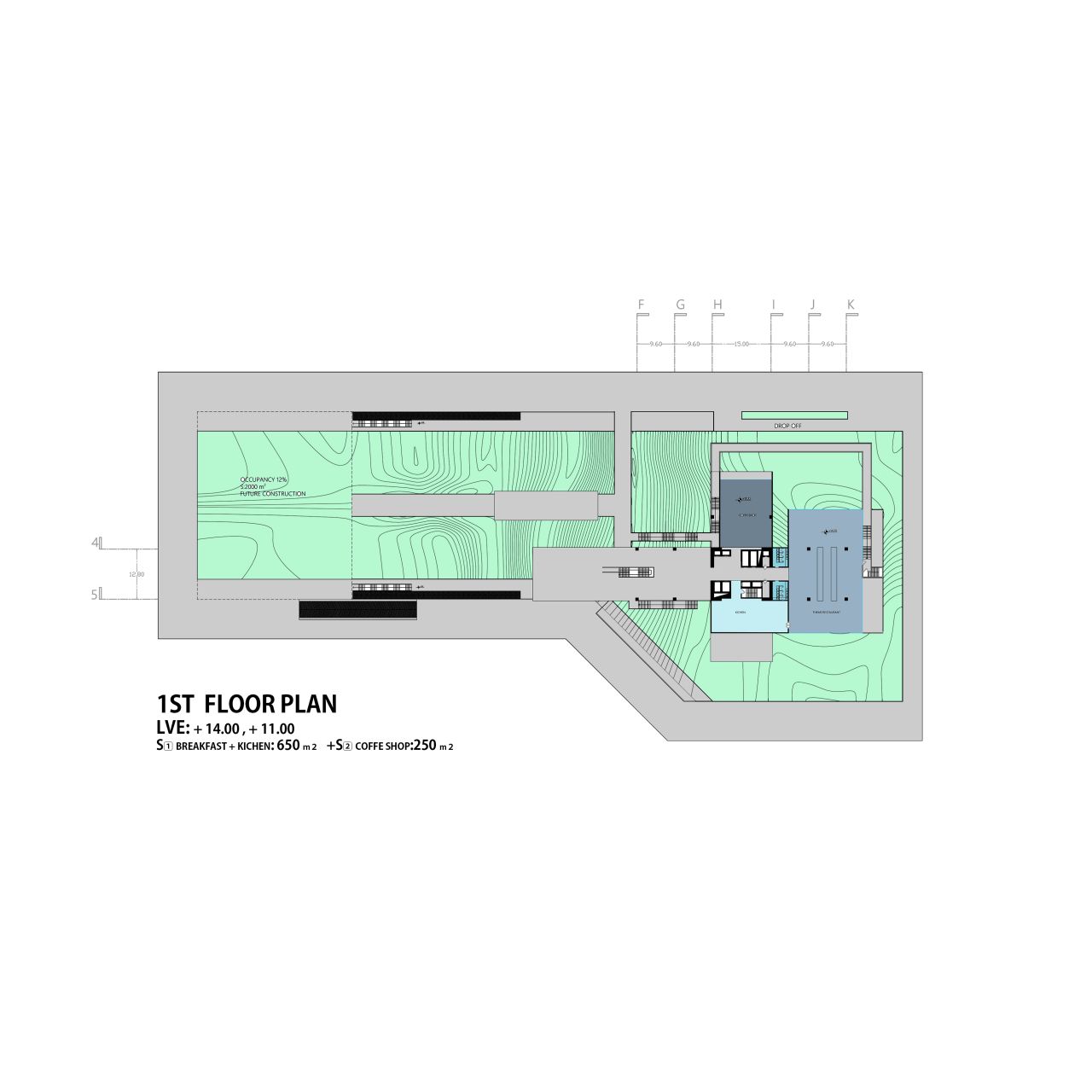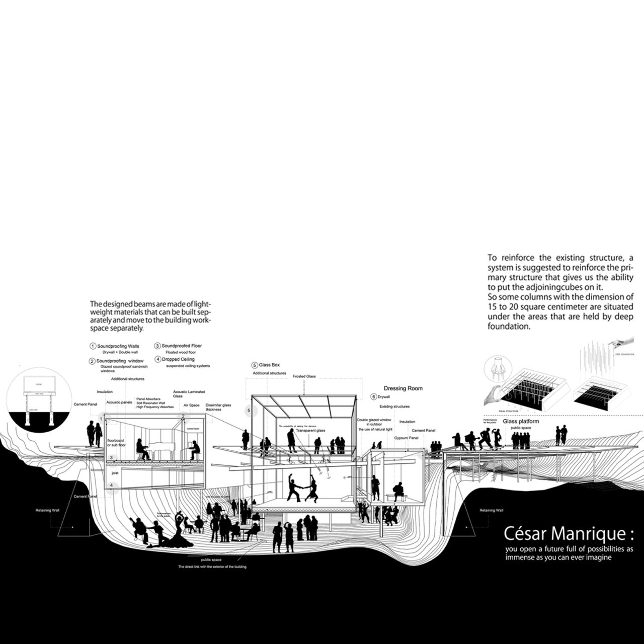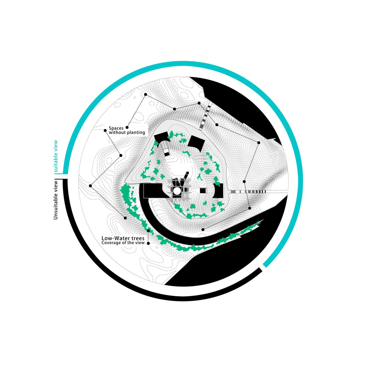 ایده ایجاد یک لنداسکیپ سینوسی دوم به موازات سطح زمین به تقویت لند اسکیپ از دست رفته کمک کرده و با انتقال حیاط ساختمان به ارتفاعات مختلف، سطح فضای سبز موجود را افزایش خواهد داد. در نتیجه پروژه به جای یک حیاط کوچک با یک حیاط بزرگتر و با ساختاری سینوسی جایگزین خواهد شد .
