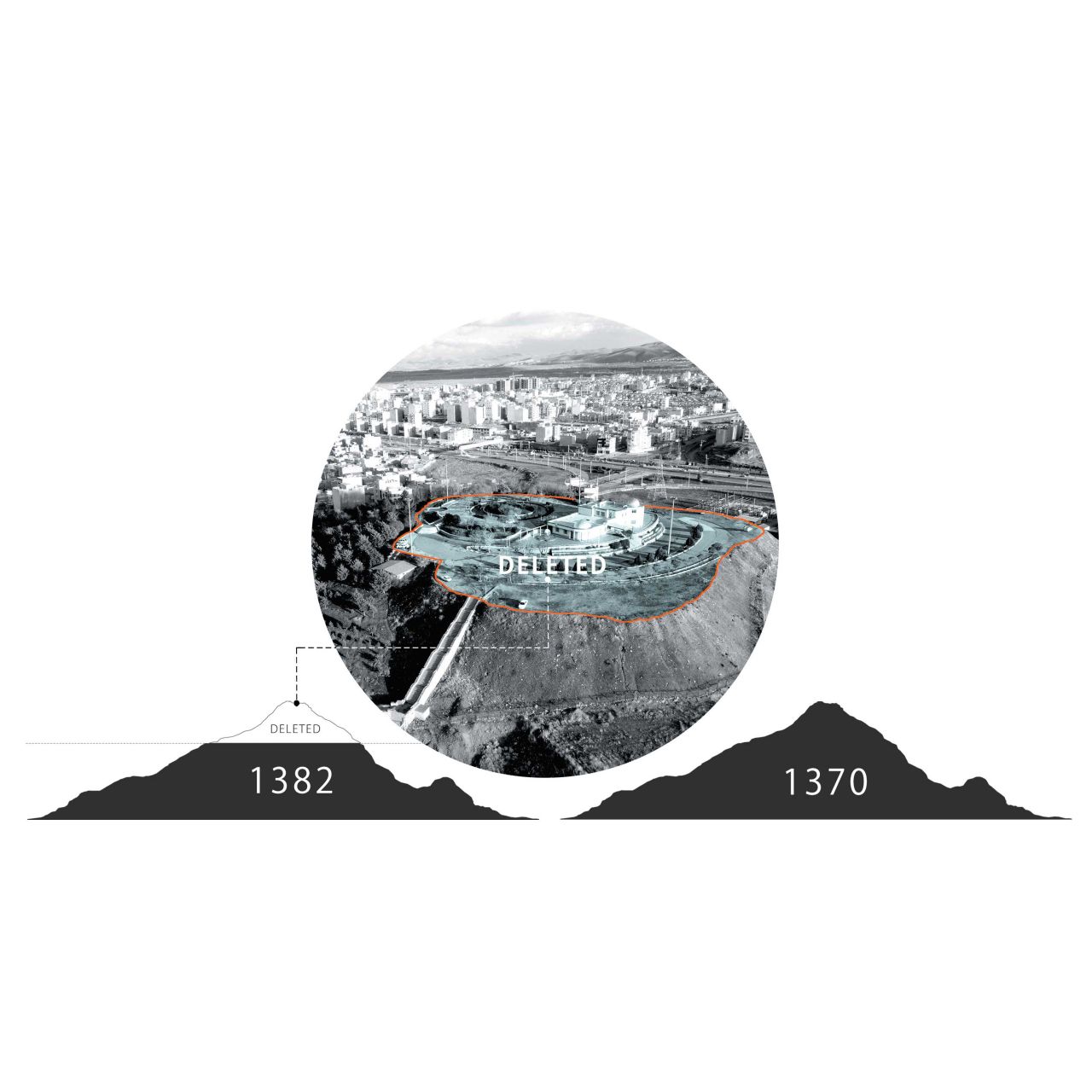 جهت ارائه راهکار برای این موضوع , ابتدا نگاهی به تاریخچه تپه می اندازیم , تپه ایی در یک محله نسبتا پایین شهر و همجوار با محله مزدقینه ,که در طول سالها بدون توجه باقی مانده و نهایتا در سال 1382 با ساخت رصد خانه ابن صلاح به مساحت حدود 800 متر مربع بر ارتفاع آن و خاکبرداری و ایجاد فضای مسطح مرکزی، ساختار مورفولوژیک تپه دستخوش مداخلاتی شده است , که سبب شده تپه به عنوان یک نشانه در ساختار فضایی شهر ماهیت و شاکله اولیه خود را به عنوان یک نشانه و از طرفی میراث شهری از دست دهد . در این راستا , اقدامات آینده پروژه را از منظری خواهیم دید که به بازافرینی و احیای ماهیت تپه , قبل از سال 1382 اشاره داشته باشد .