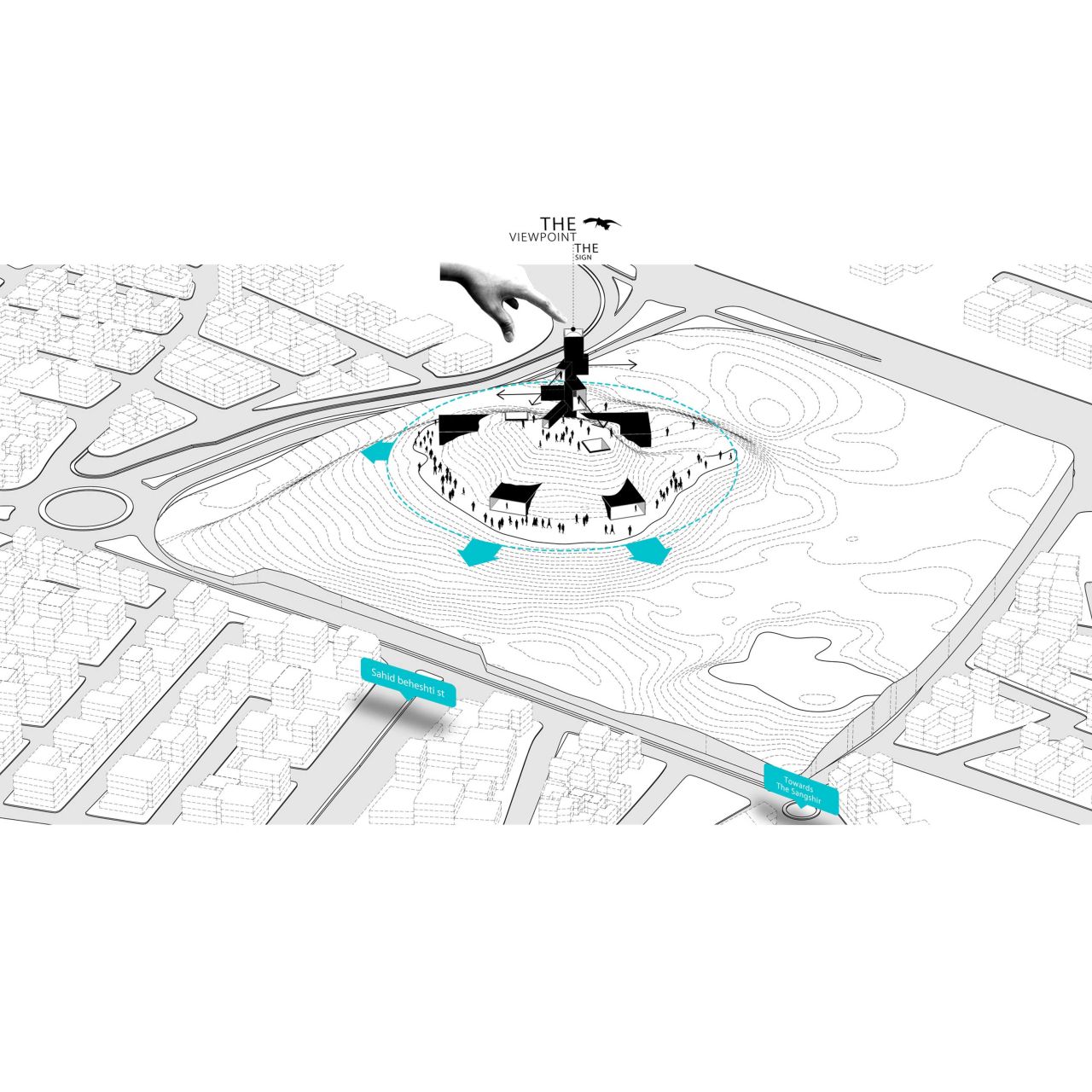 با توجه به این موضوع به این تصویر ذهنی خواهیم رسید که خود تپه در جایگاه یک میراث و یک نشانه شهریست و حفظ ماهیت طبیعی تپه وظیفه اصلی در حفظ یک میراث شهری برای آیندگان خواهد بود و دخل و تصرف از طریق ساخت وساز و محوطه سازی روی تپه , الویت دوم را در استخوان بندی شهر خواهد داشت . در نتیجه احیا و باز آفرینی ماهیت اصلی تپه به عنوان مولفه اصلی در برخورد با پروژه خواهد بود .