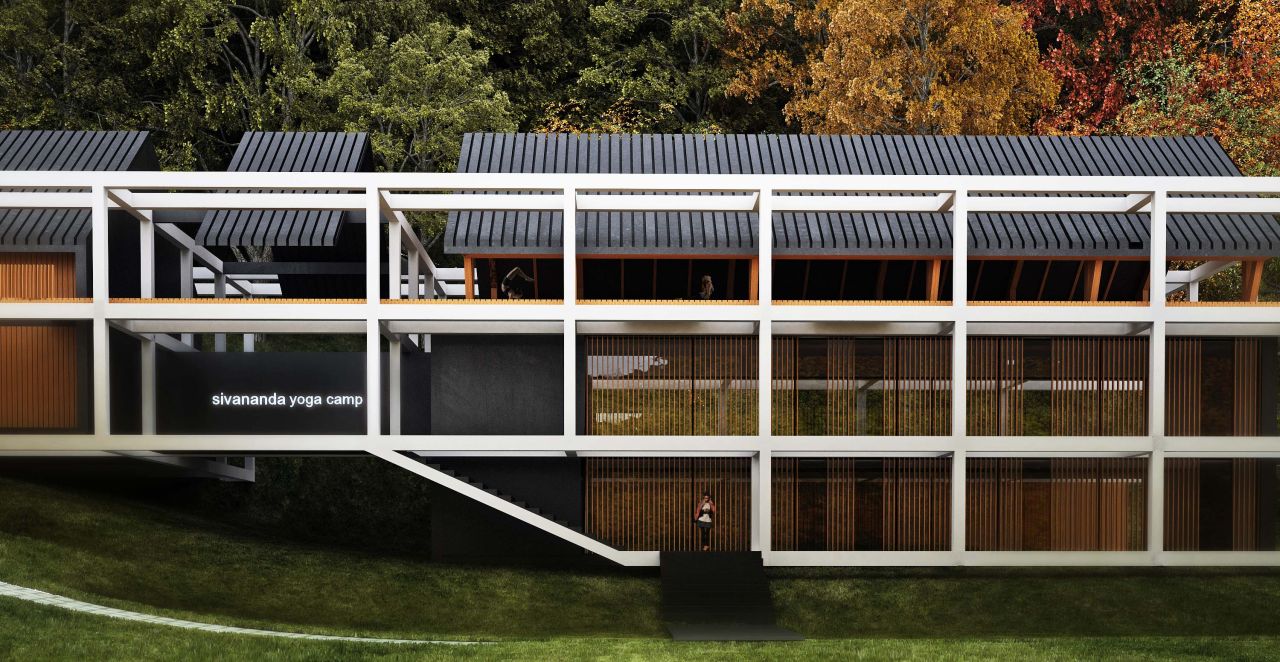 مرکز یوگا "سیواندا" در منطقه ایی کوهستانی در کانادا که پوشیده از درختان بومی است قرار دارد و به علاقه مندان یوگا اختصاص یافته است ، در یک سمت بنا بخش های اقامتی و در بخش دیگر فضاهای مرتبط به یوگا در سه طبقه قرار گرفته است.