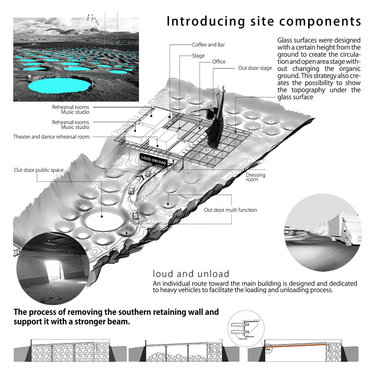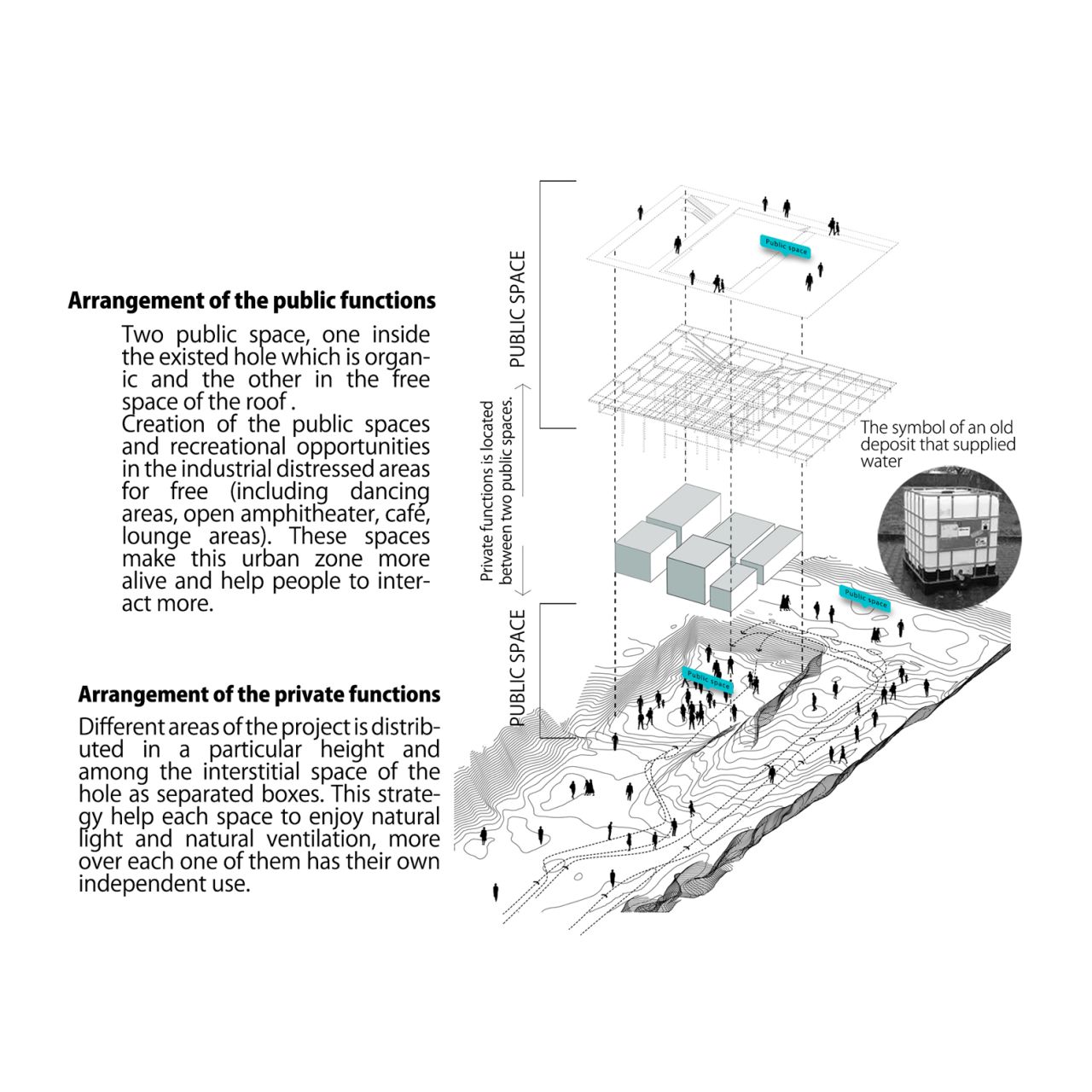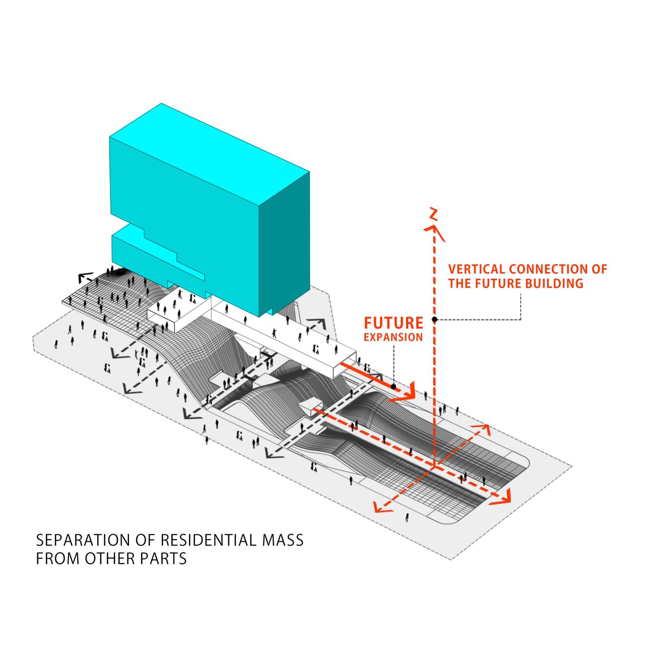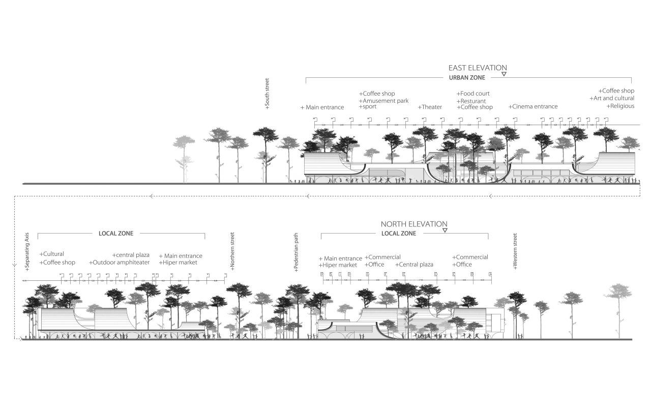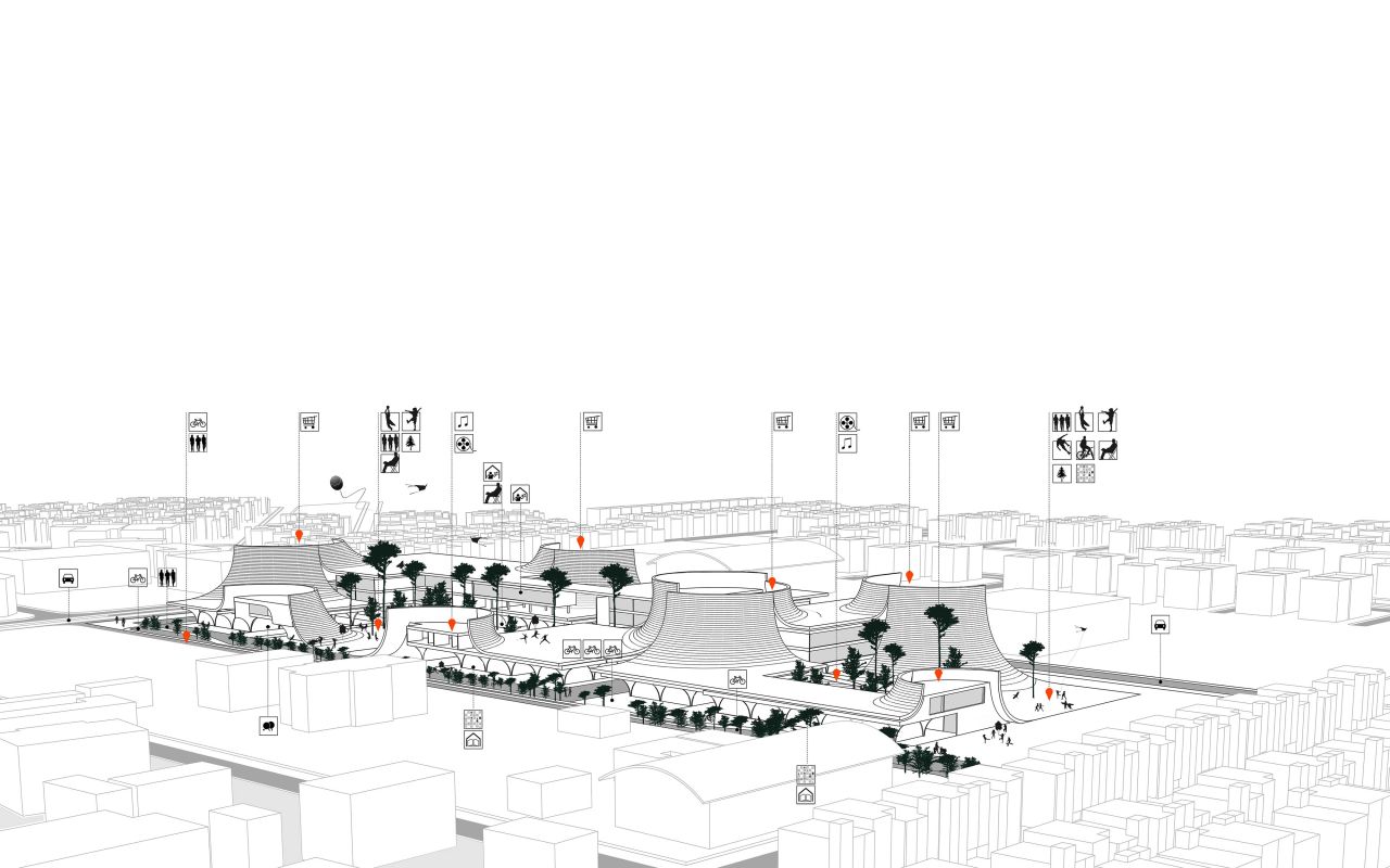 در این پروژه تلاش شد تا این خلأ اساسی به عنوان محور اصلی طراحی در نظر گرفته شود. بدین ترتیب، برنامهریزی سایت بر پایهی فضاهای فراغتی و تفریحی شکل گرفت و مقولهی تجارت در پیوند با این هستهی مرکزی دنبال شد. در واقع، حضور فعالیتهای تجاری در دل فضاهای فراغتی، پایداری پروژه را در بستر اجتماع تقویت کرده و به رونق اقتصادی آن کمک میکند.