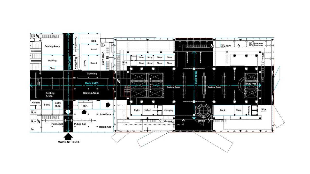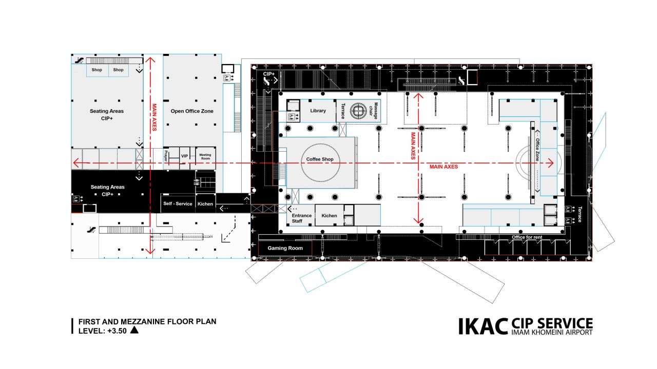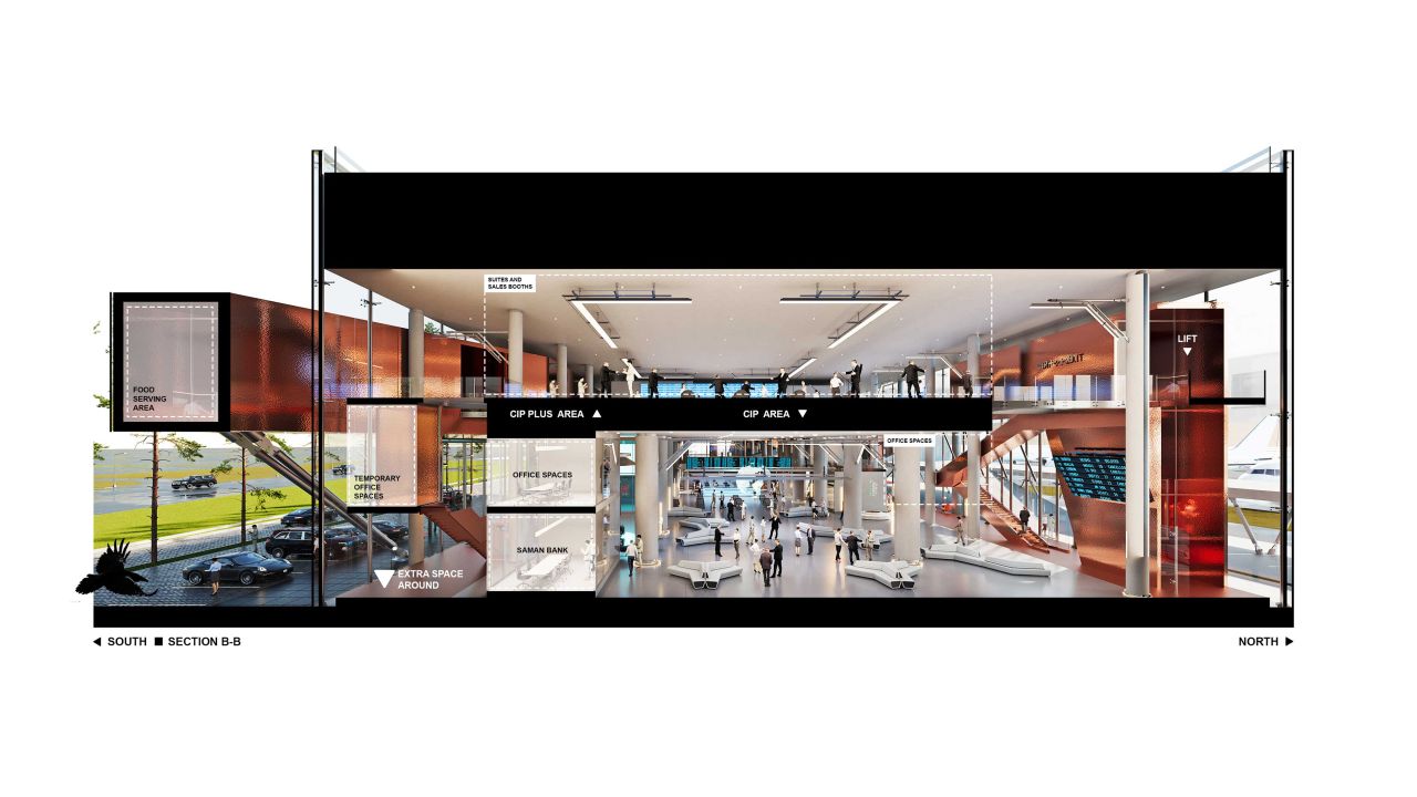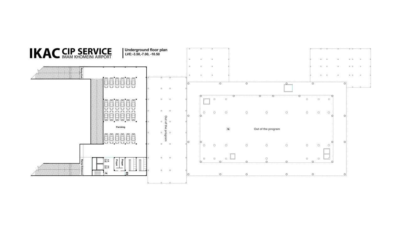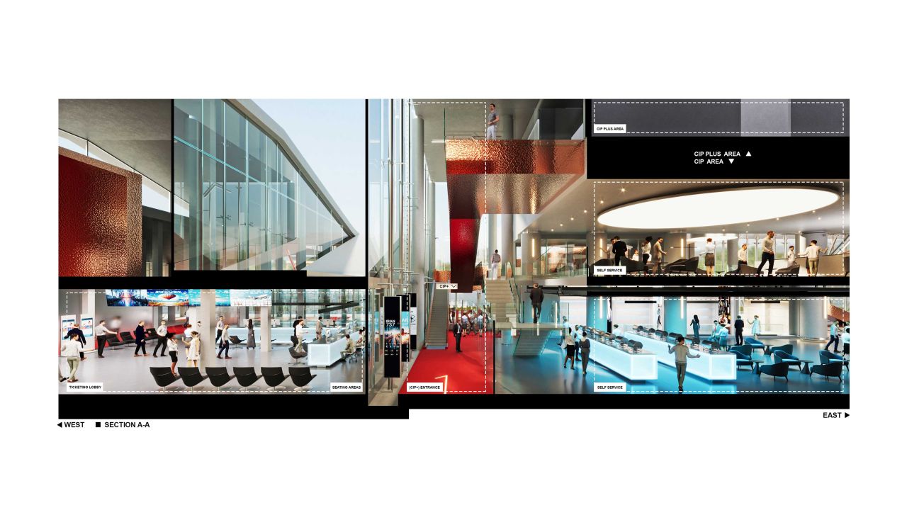 پروژهی حاضر مربوط به بازطراحی و توسعهی ساختمان سیآیپی فرودگاه بینالمللی امام خمینی ایران است؛ ساختمانی که در حال حاضر فعال بوده و پذیرای مسافران میباشد. این طرح با زیربنای تقریبی 15000 مترمربع بازسازی و گسترش یافته است.