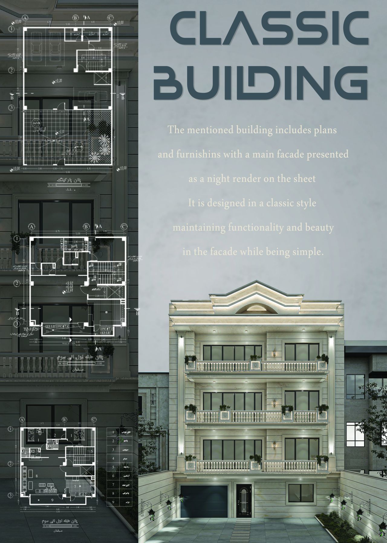 در کنار طراحی مفهومی و رندرینگ واقعگرایانه، به اصول فنی و اجرایی پروژه نیز تسلط دارم و توانایی ترسیم نقشههای فاز 2، جزئیات و توانایی ترسیم نقشههای فاز 2، جزئیات اجرایی و نقشههای دقیق فنی را دارم.مهارتها