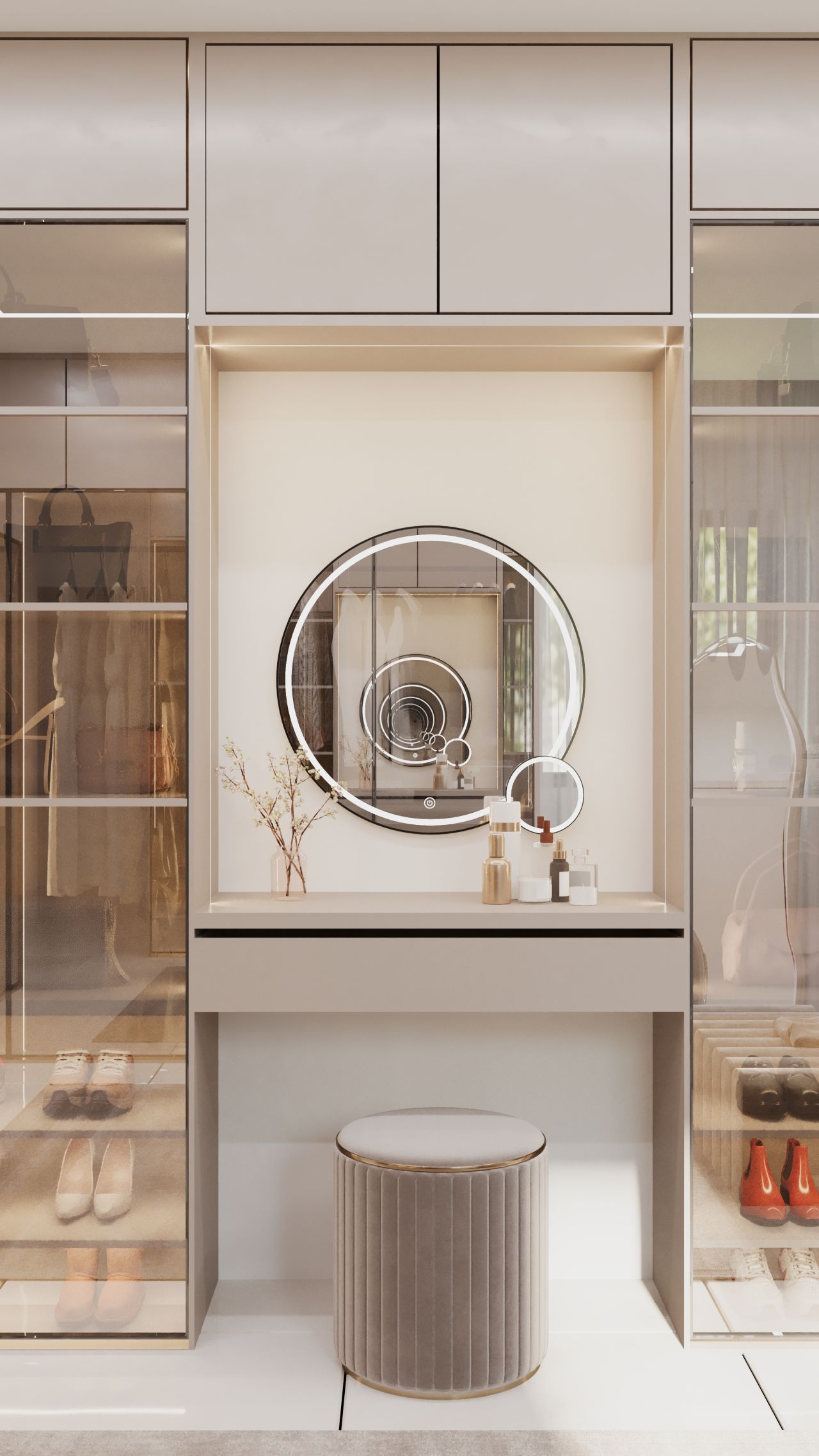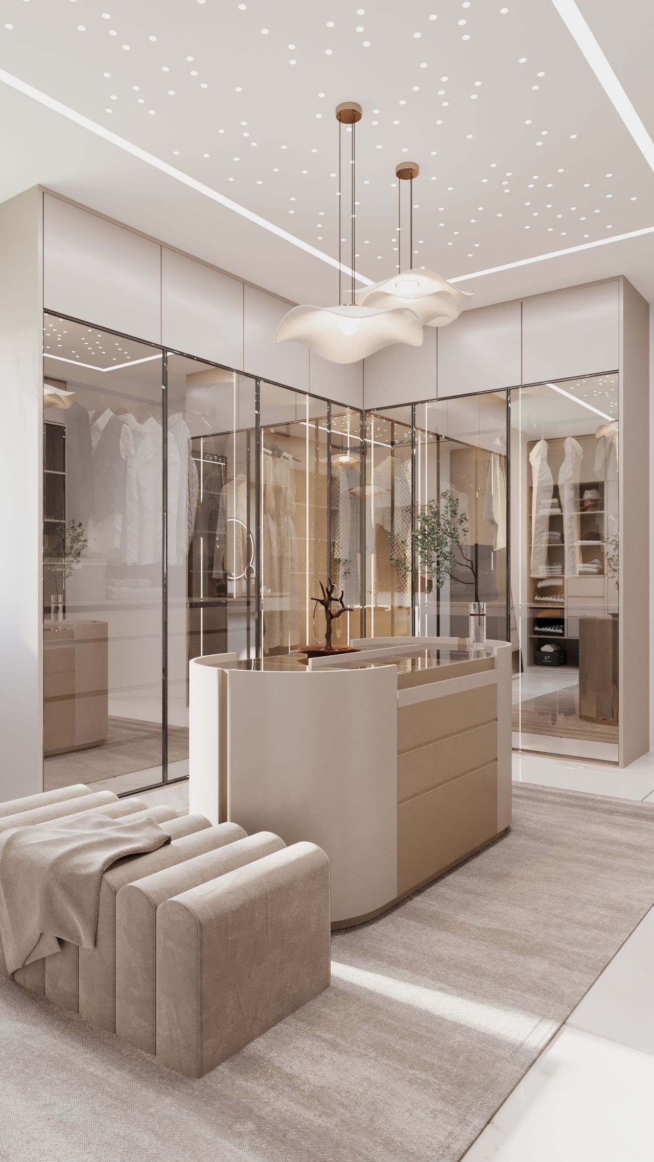طراحی کلازت روم برای خانه ویلایی-در عین حال که کلی فضاهای مختلف داره برای انواع و اقسام لوازم،به ظرافت و زیبایی فضا هم توجه زیادی شده است