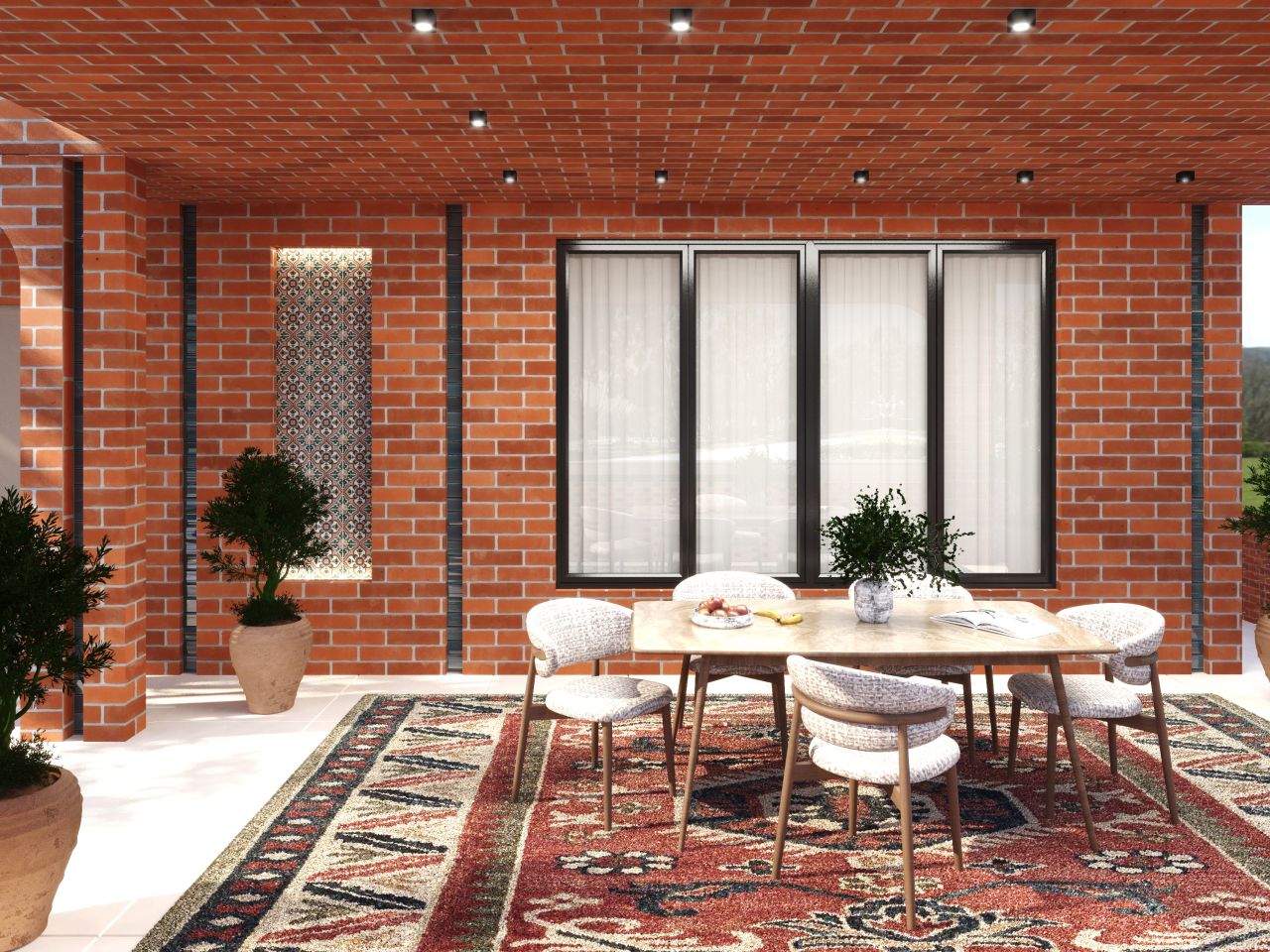 این پروژه یک ویلای روستایی میباشد که به علت حفظ بافت روستایی موجود اغلب متریال مصرفی اجر میباشد همچنین که کارفرما بر سنتی بودن آن تاکید داشت.