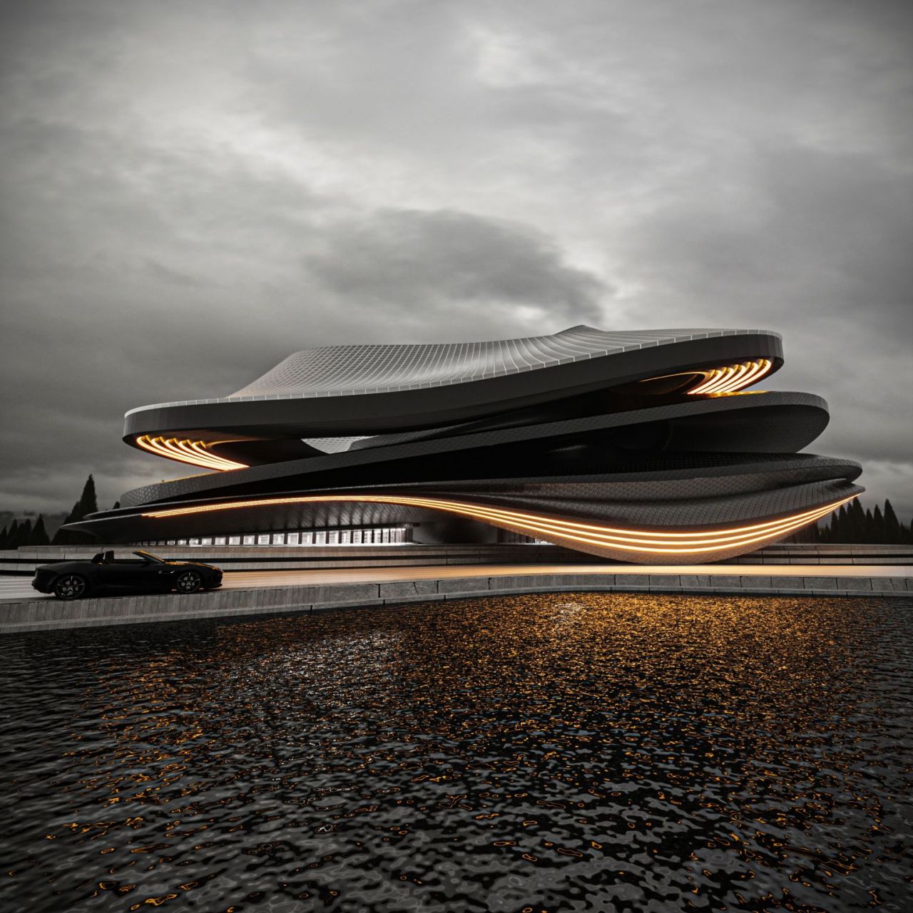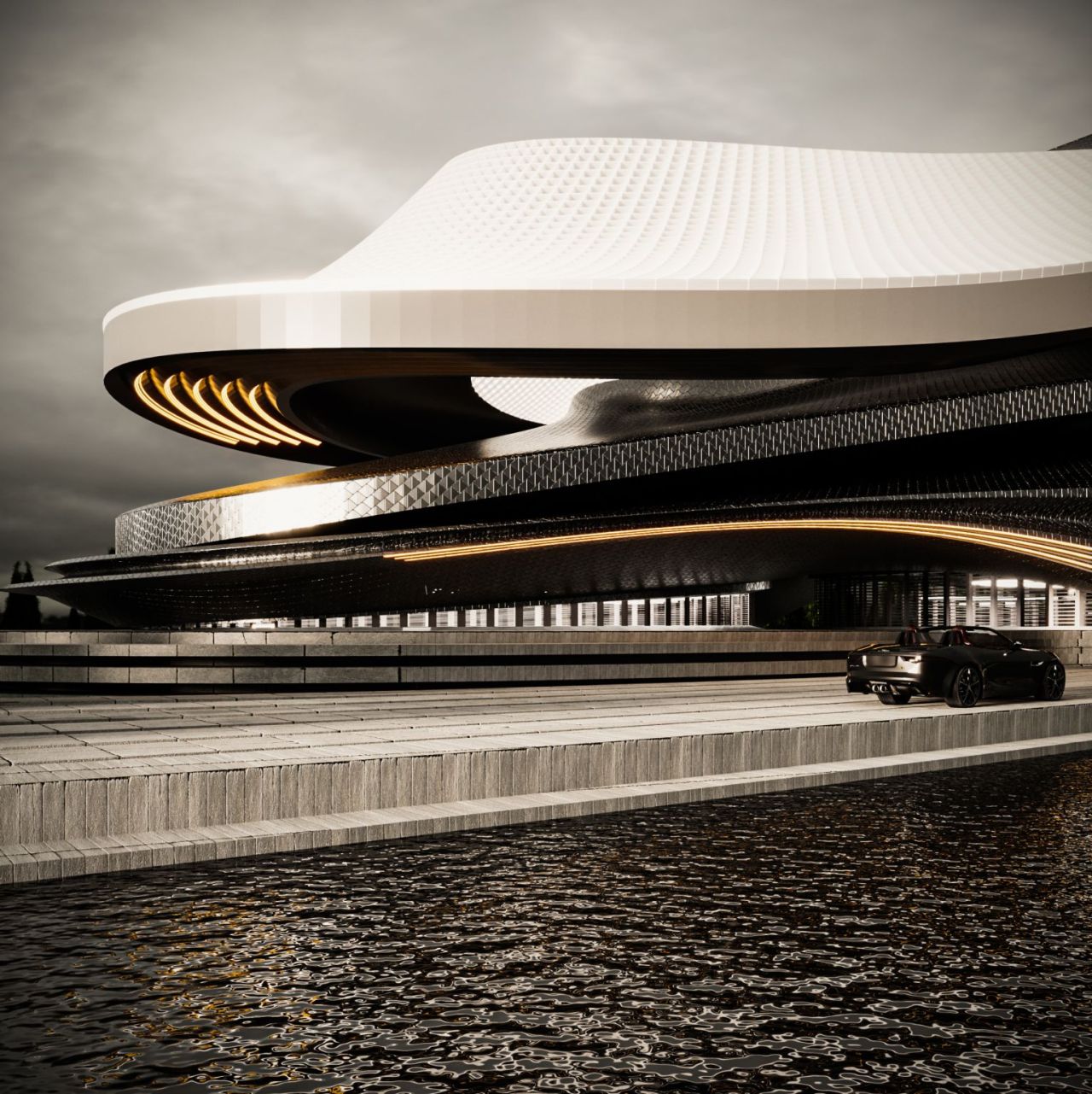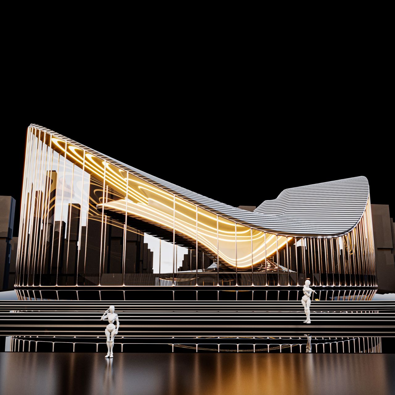 این بنا نه بهعنوان ظرفی برای عملکرد، بلکه همچون یک رقصنگاریِ متجسم در فرم تصور شده است — کشاکشی میان جاذبه و ظرافت، میان جرم و جنبش.