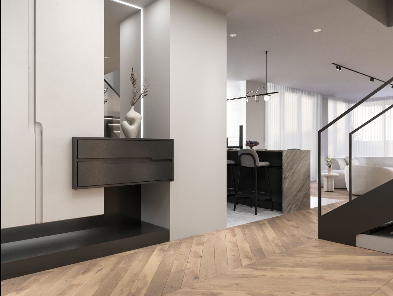 مدلسازی و رندر نمای اداری مدرن