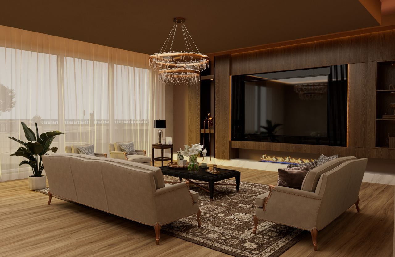 طراحی داخلی سالن نشیمن با ریکرد گرم ، صمیمی و مدرن