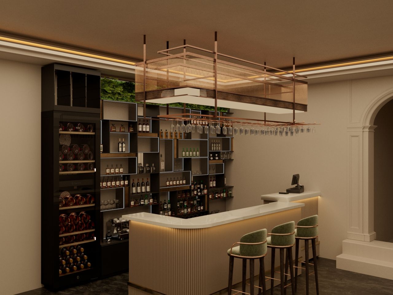طراحی بار سرد و استیج رستوران