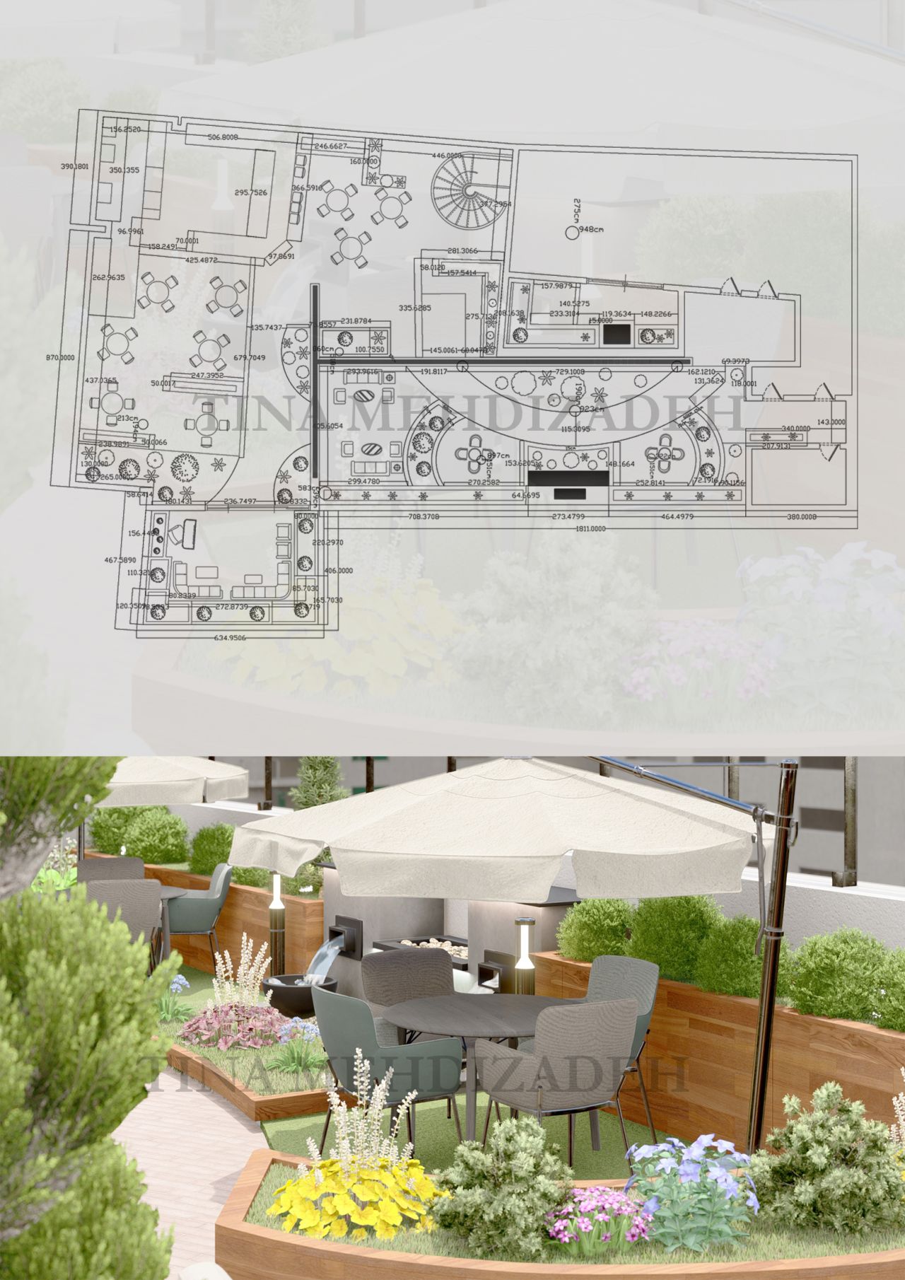 این روفگاردن با ترکیب پرگولاهای چوبی، فضای سبز لایهدار و نشیمنهای دنج، محیطی آرام و کاربردی برای تعامل و استراحت ایجاد کرده است. طراحی، تعادل میان طبیعت و معماری مدرن را در فضایی گرم و دعوتکننده به نمایش میگذارد.